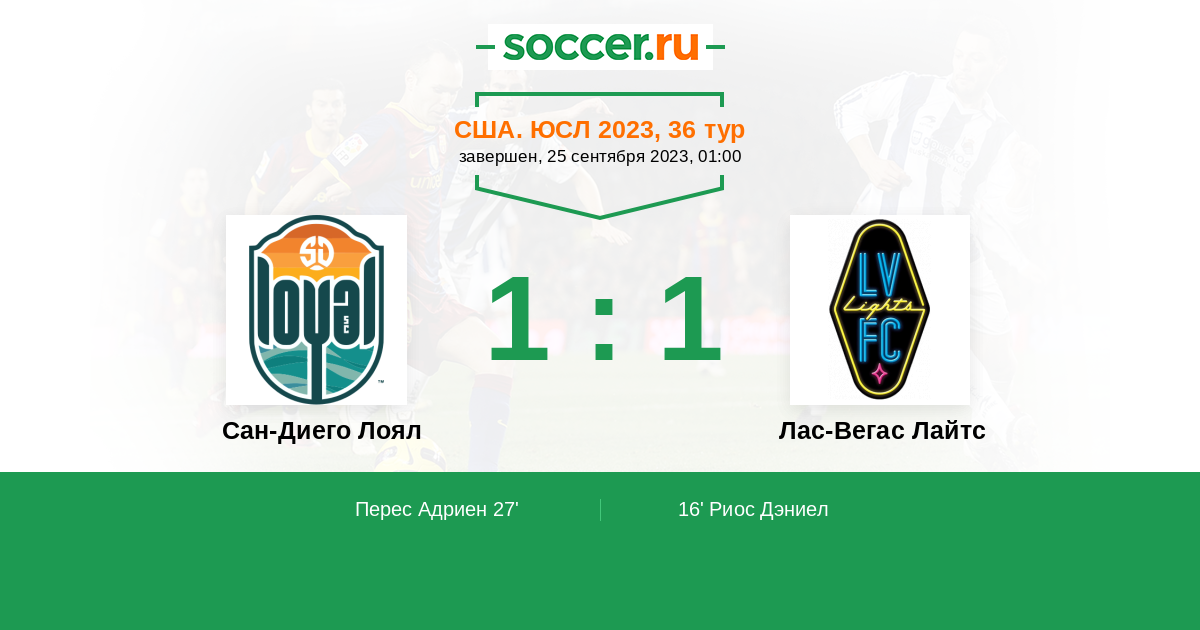 Протокол матча Сан-Диего Лоял против Лас-Вегас Лайтс