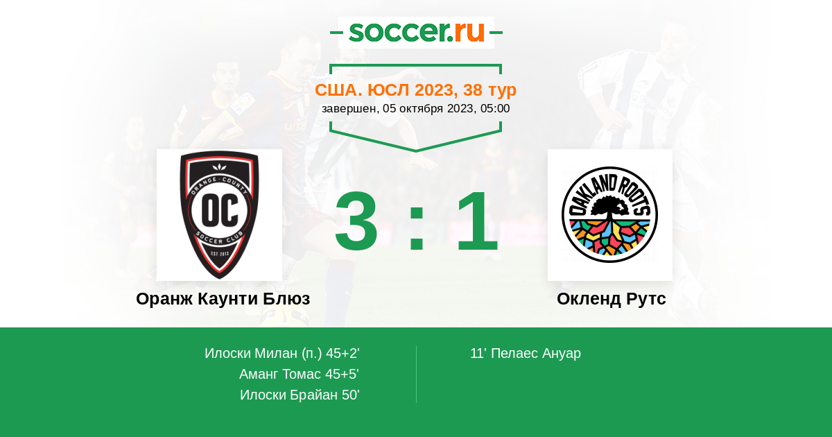 Протокол матча Оранж Каунти Блюз против Окленд Рутс