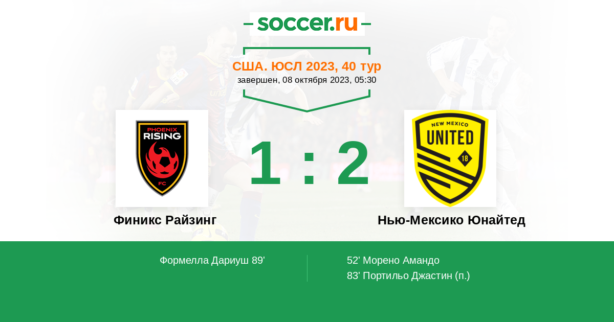 Протокол матча Финикс Райзинг против Нью-Мексико Юнайтед