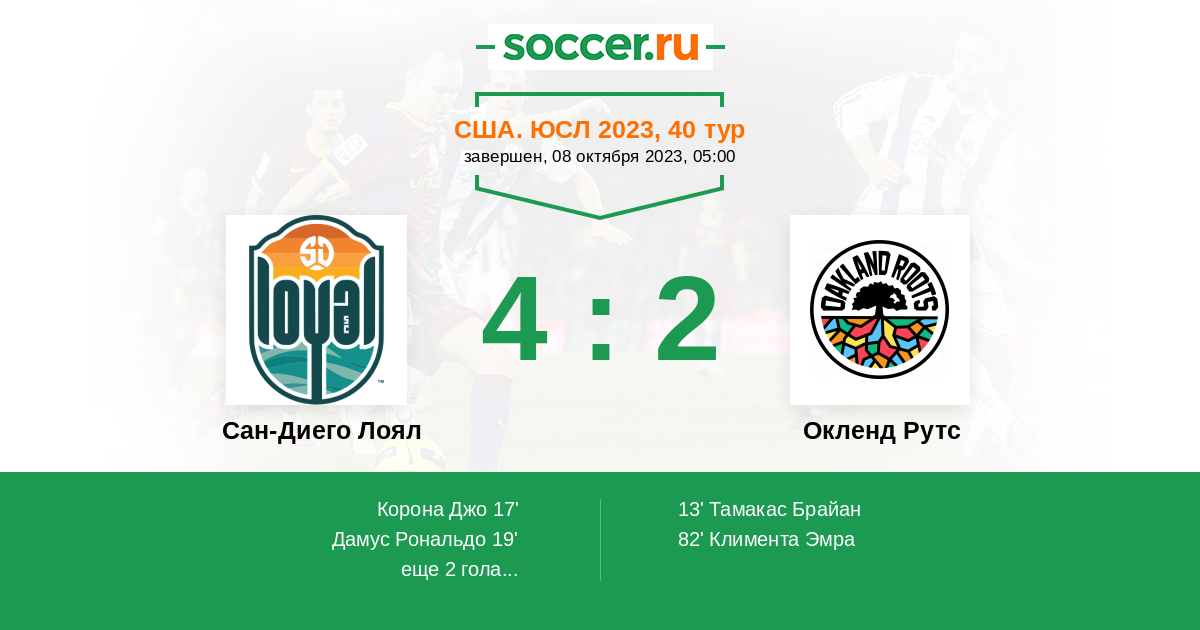 Протокол матча Сан-Диего Лоял против Окленд Рутс
