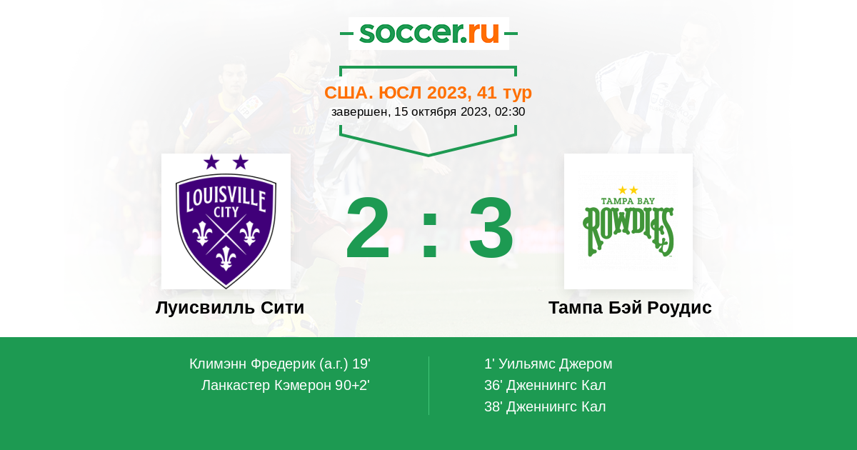 Протокол матча Луисвилль Сити против Тампа Бэй Роудис