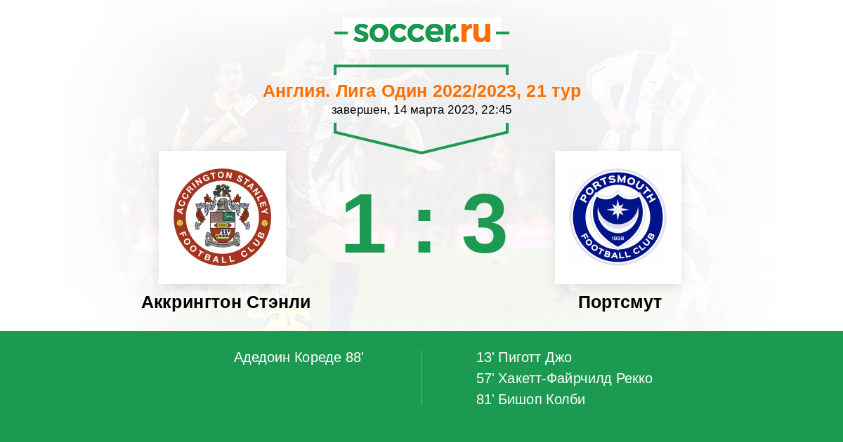 Протокол матча Аккрингтон Стэнли против Портсмут