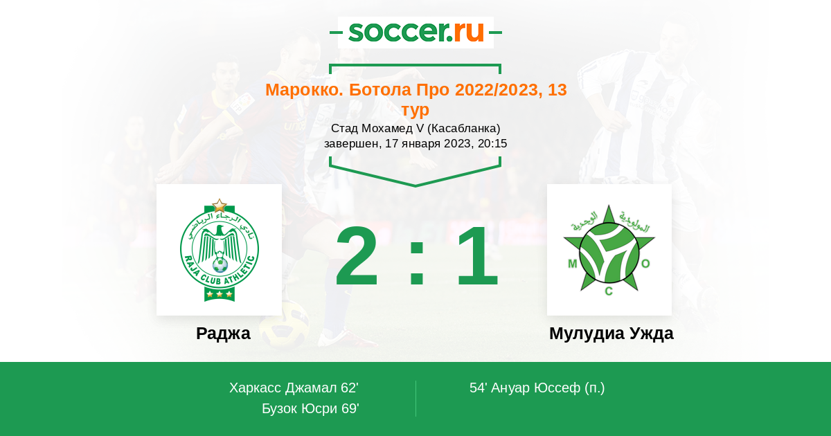 Протокол матча Раджа против Мулудиа Ужда