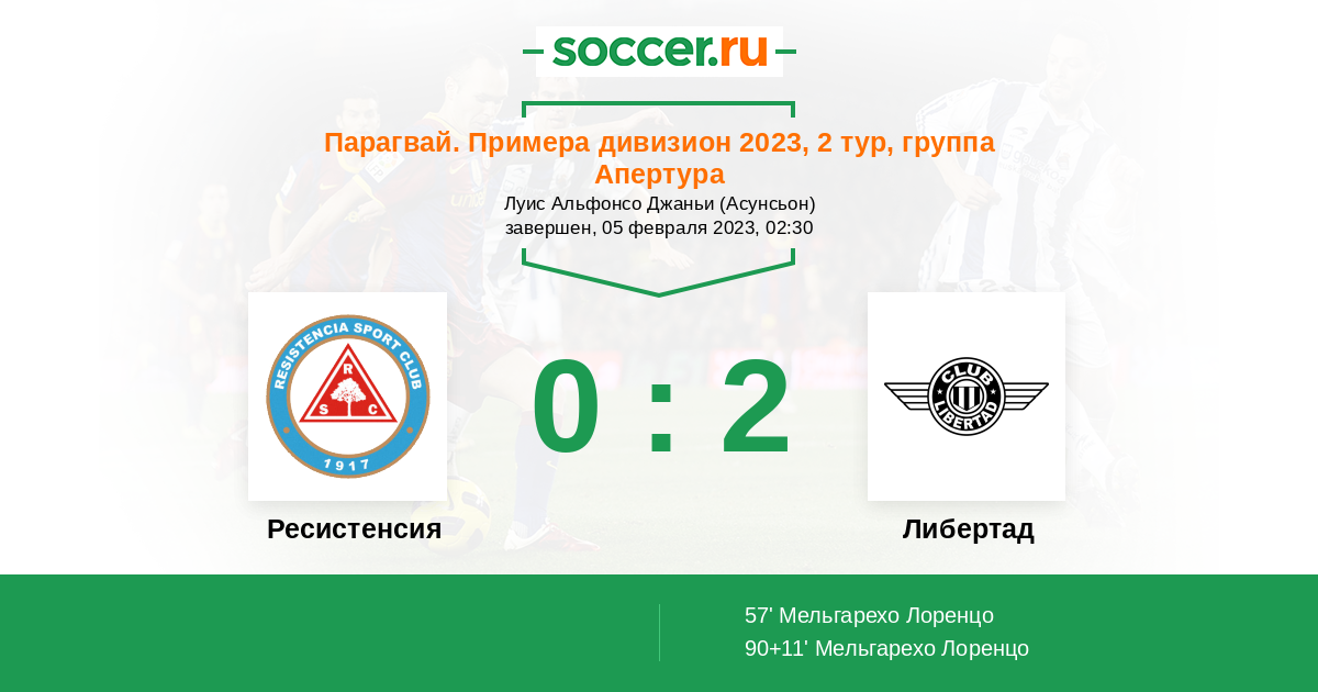 57' (0:1) Мельгарехо Лоренцо (10) (Вильяльба Эктор Даниэль (15))