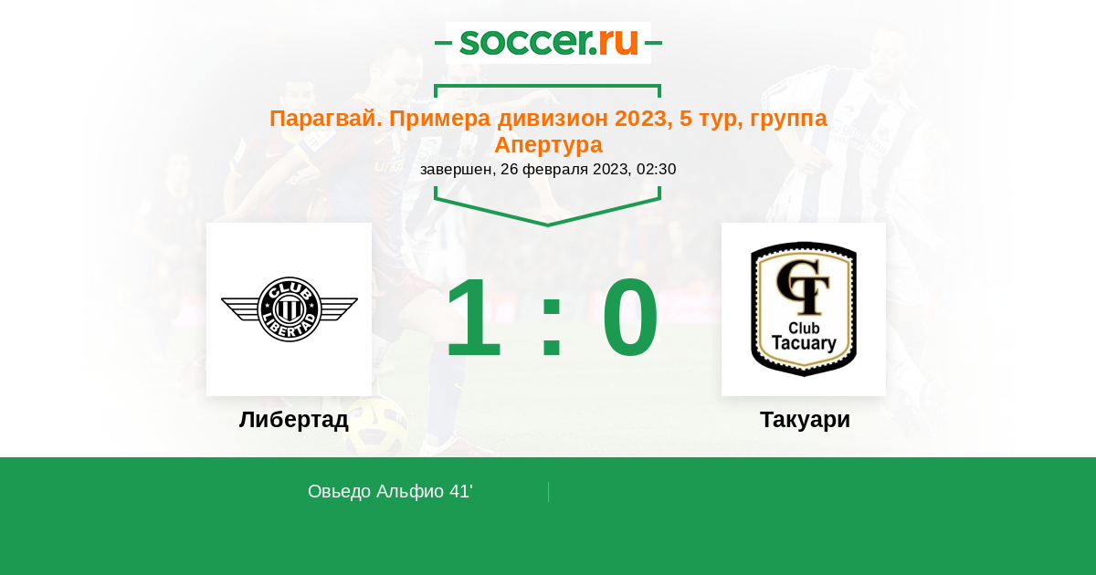 Протокол матча Либертад против Такуари