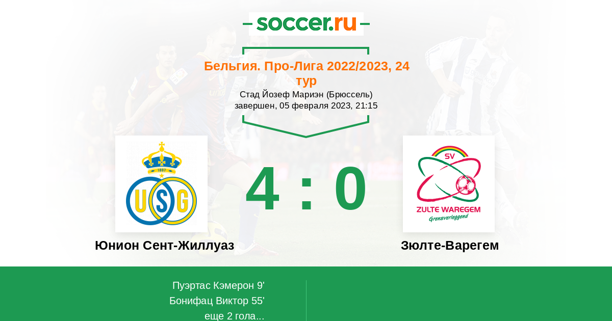 Протокол матча Юнион Сент-Жиллуаз против Зюлте-Варегем