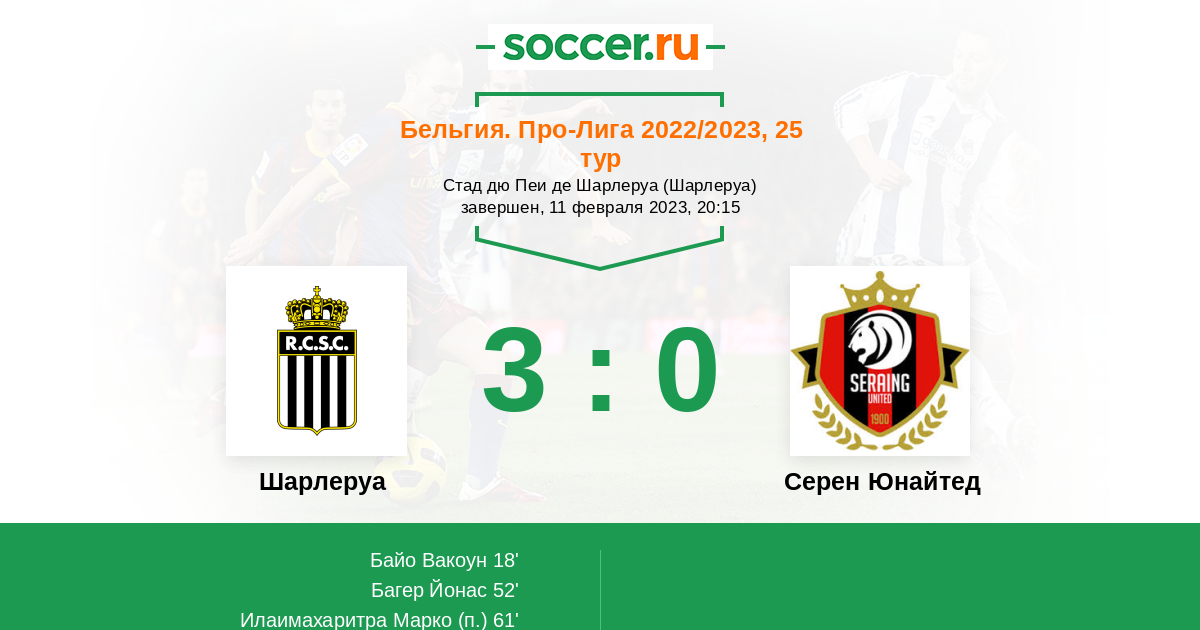 Протокол матча Шарлеруа против Серен Юнайтед