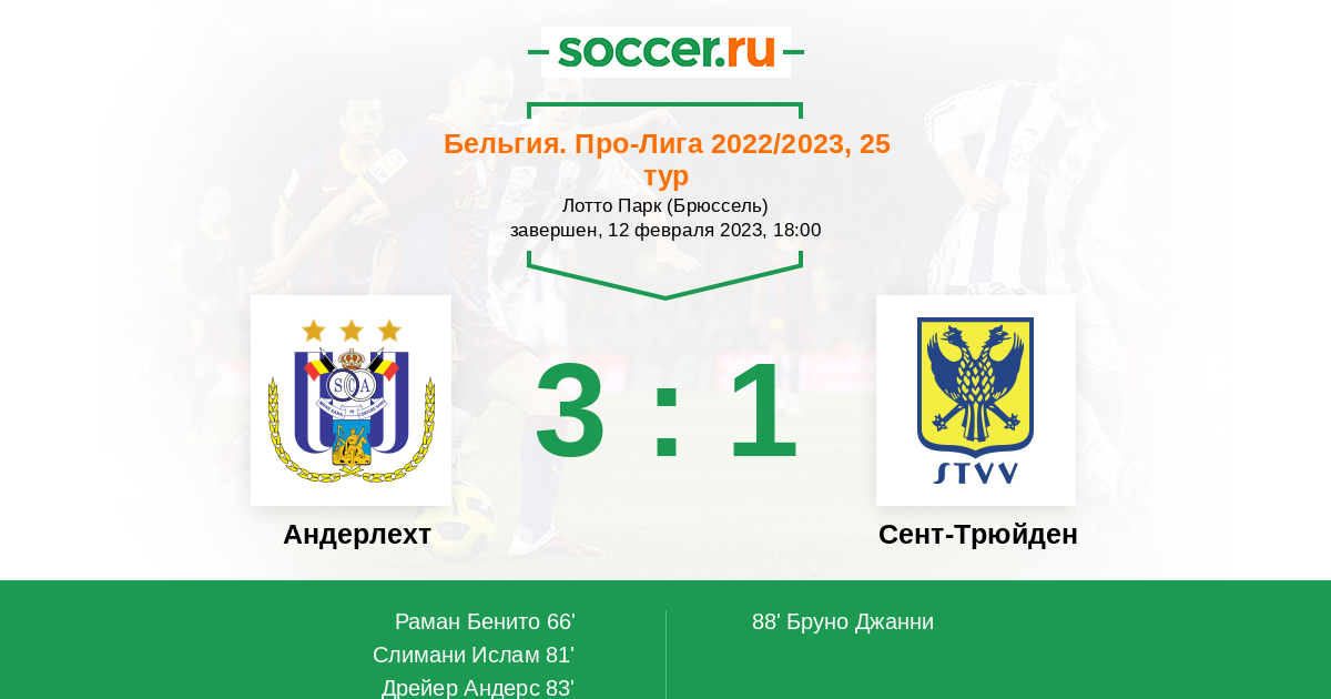 Протокол матча Андерлехт против Сент-Трюйден