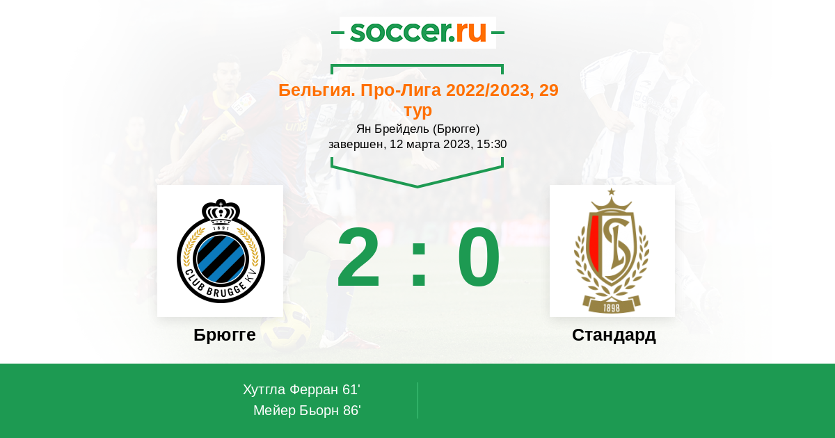 Протокол матча Брюгге против Стандард
