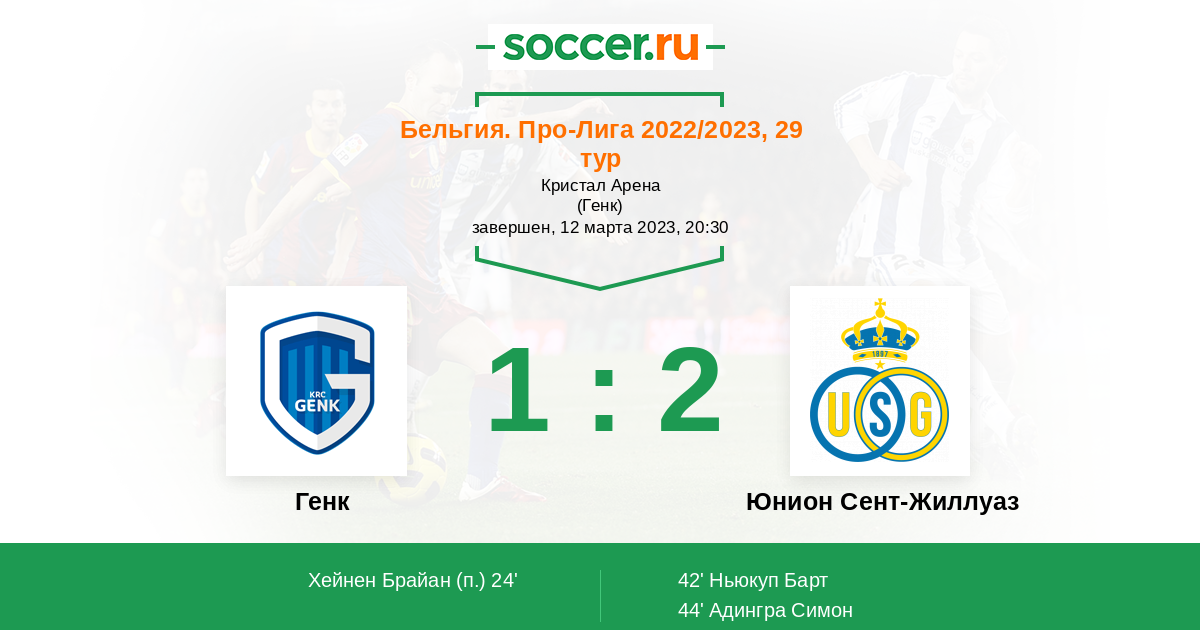 Протокол матча Генк против Юнион Сент-Жиллуаз