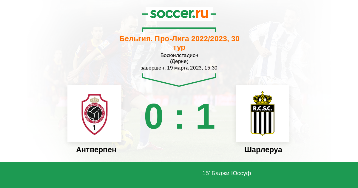 Протокол матча Антверпен против Шарлеруа