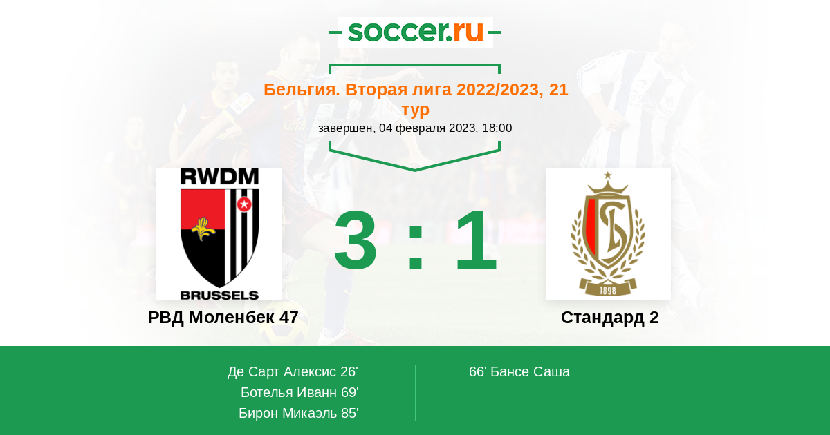 Протокол матча РВД Моленбек 47 против Стандард 2