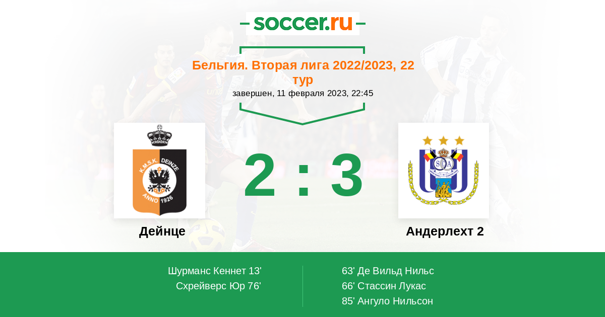 Протокол матча Дейнце против Андерлехт 2