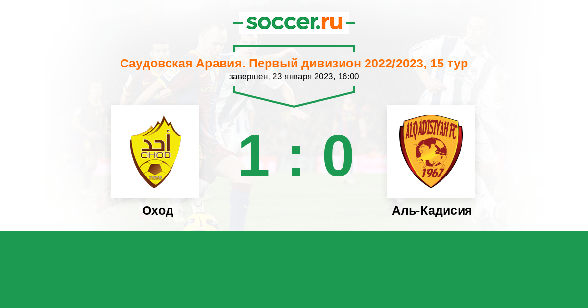 Саудовская Аравия. Первый дивизион 12.11.2021 Оход Логотип футбольный клуб Оход (Медина) 1:1 Логотип футбольный клуб Аль-Кадисия (Эль-Хубар) Аль-Кадисия