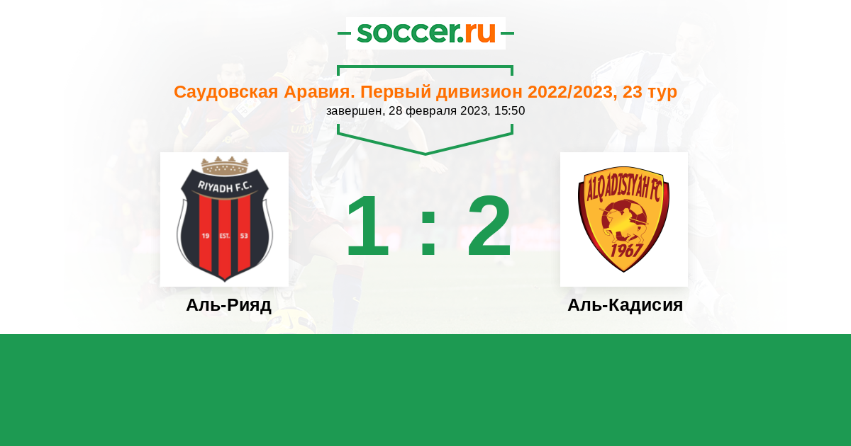 Я думаю что в этом противостоянии более чем явным фаворитом на победу является команда хозяев поля Аль - Рияд которая находится среди команд лидеров . А вот команда гостей Аль - Кадисия находится внизу турнирной таблицы и наврядли сможет отобрать очки у команды хозяев поля.