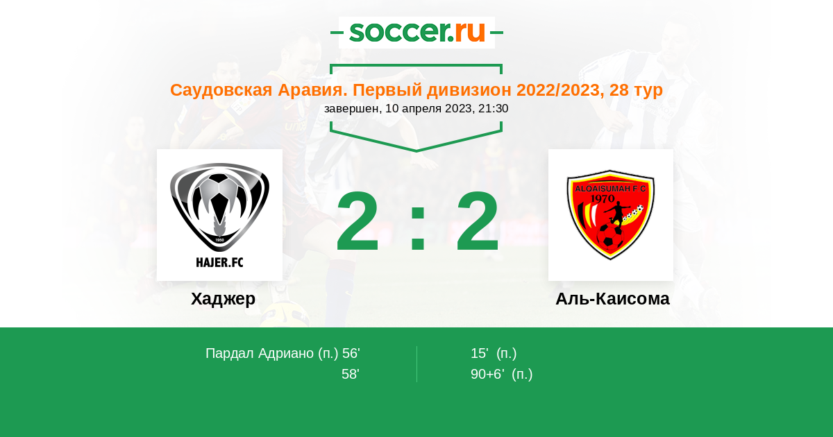 Протокол матча Хаджер против Аль-Каисома