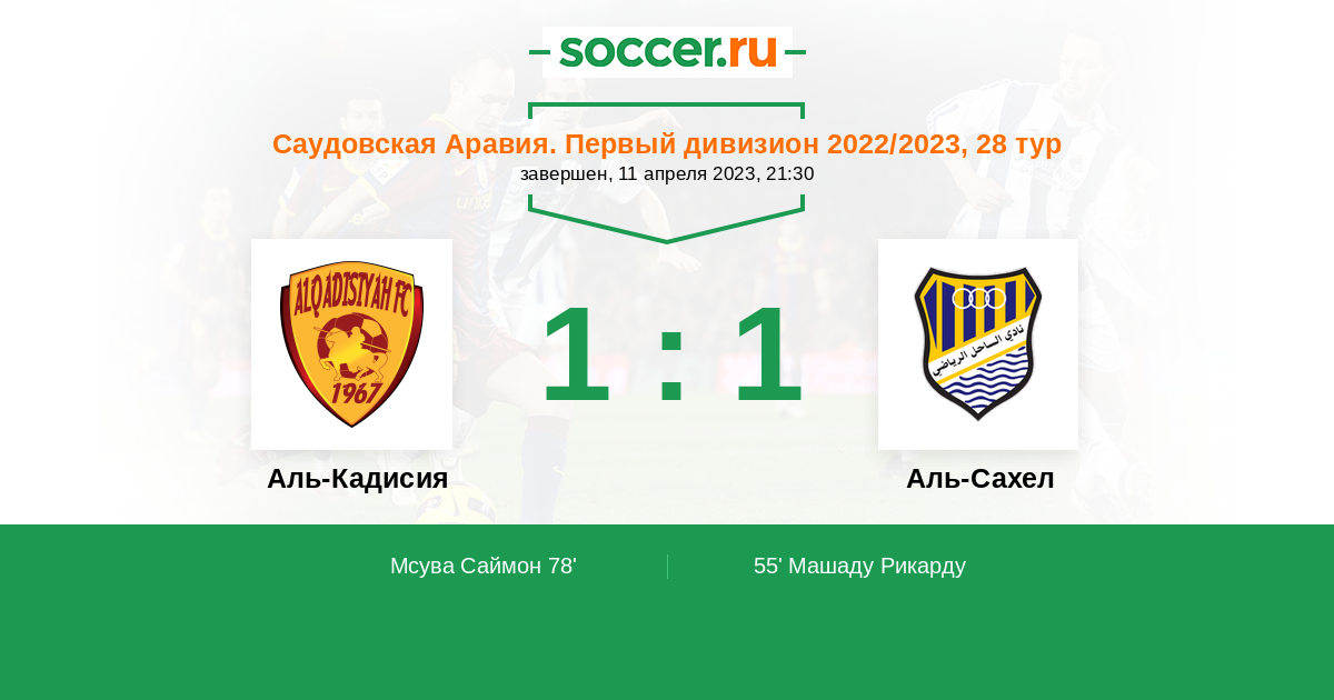 Протокол матча Аль-Кадисия против Аль-Сахел