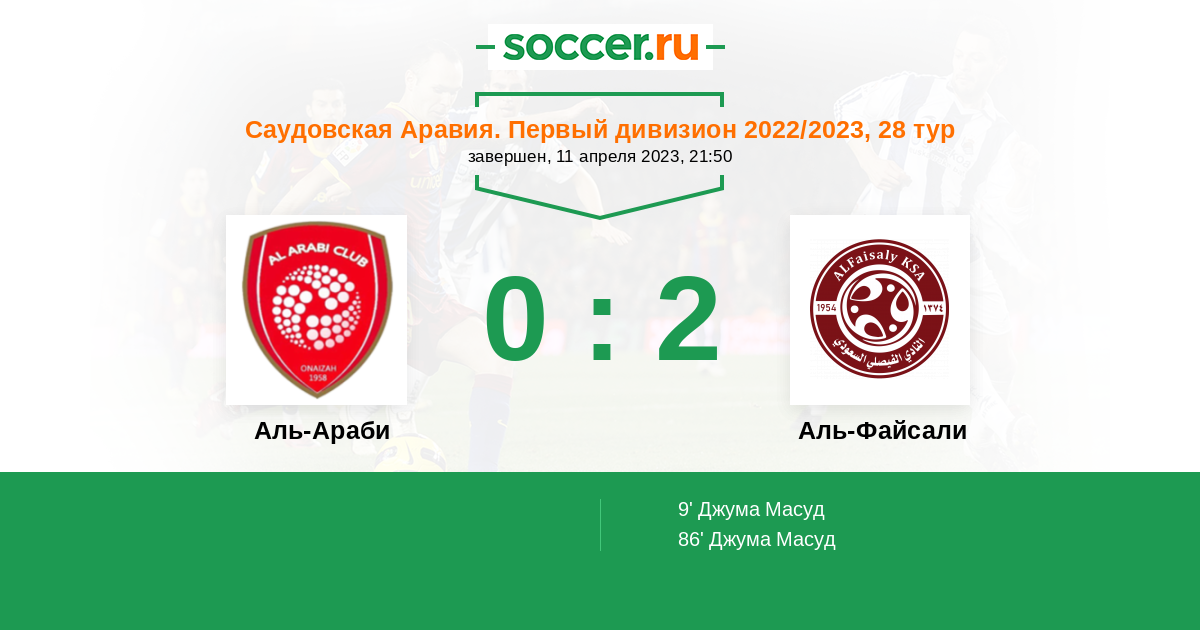 Протокол матча Аль-Араби против Аль-Файсали
