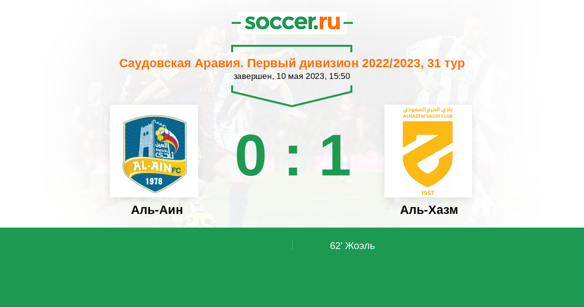Протокол матча Аль-Аин против Аль-Хазм