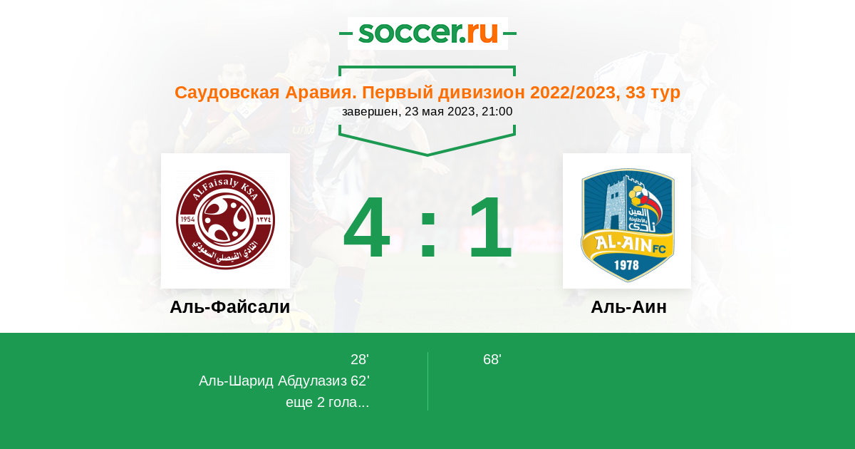 Протокол матча Аль-Файсали против Аль-Аин