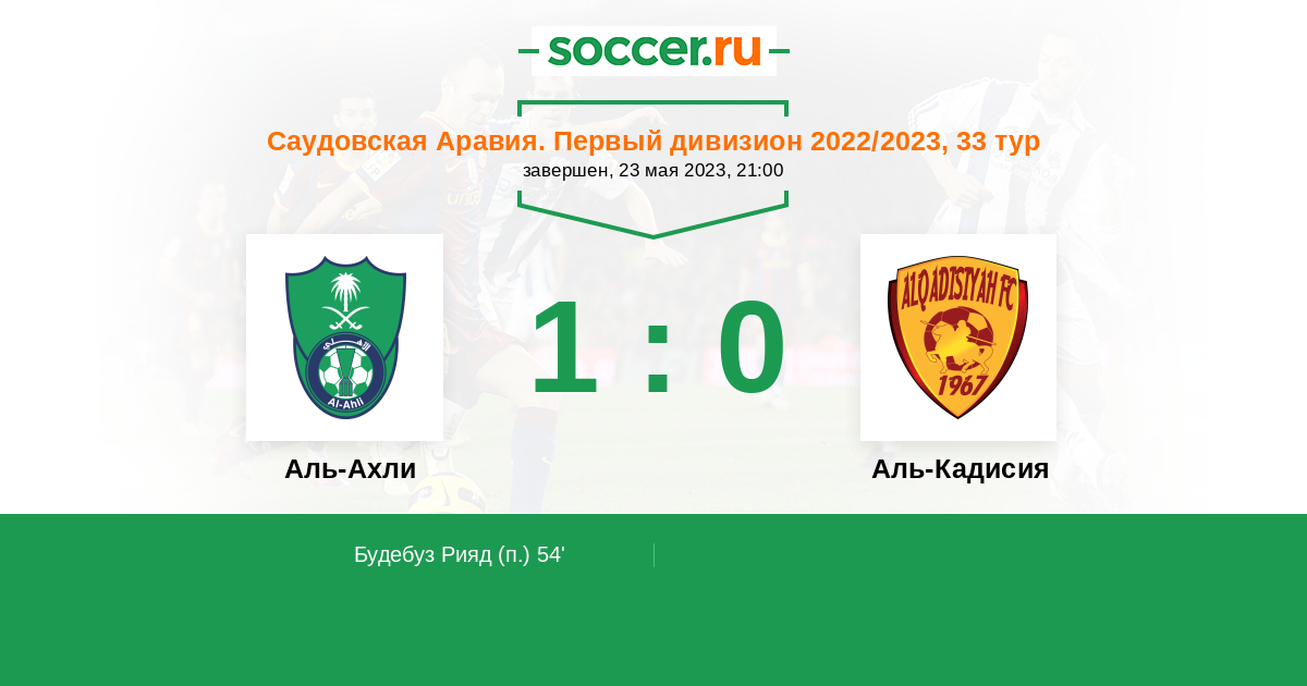 Протокол матча Аль-Ахли против Аль-Кадисия