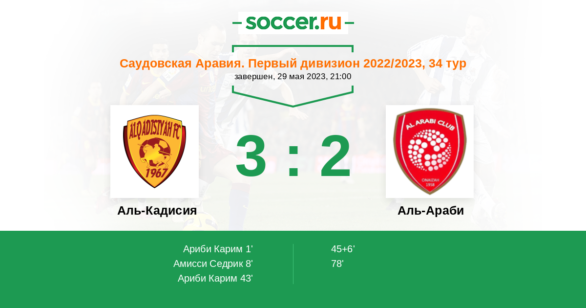 Протокол матча Аль-Кадисия против Аль-Араби