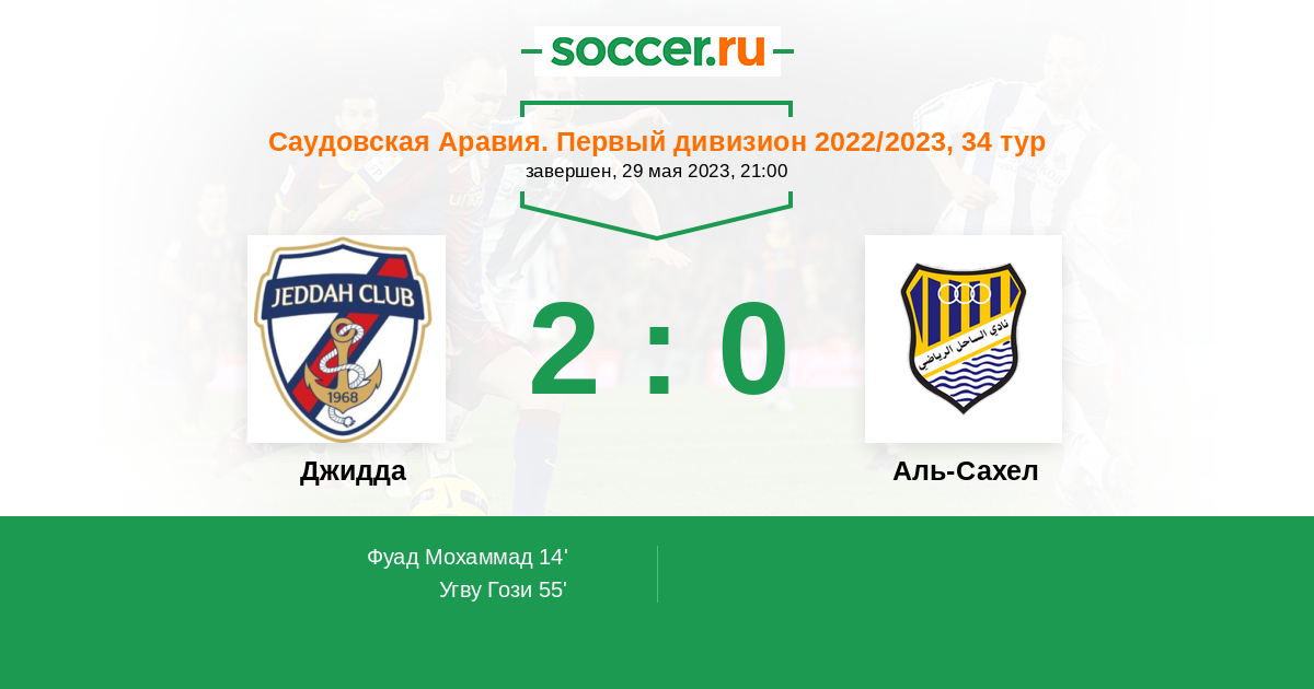 Протокол матча Джидда против Аль-Сахел