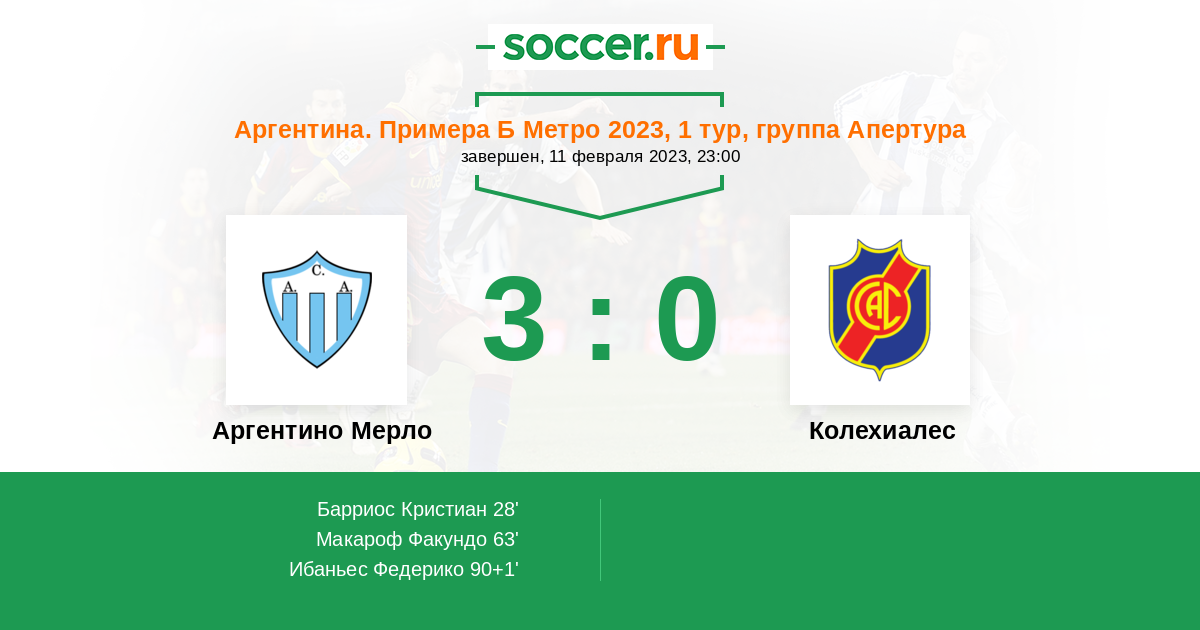 Протокол матча Аргентино Мерло против Колехиалес