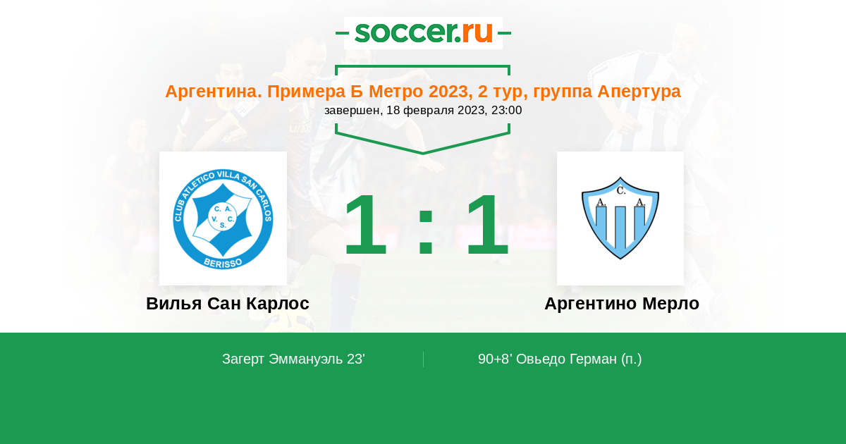 Протокол матча Вилья Сан Карлос против Аргентино Мерло