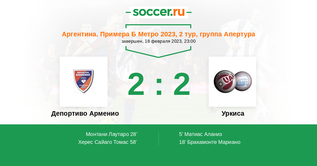 Протокол матча Депортиво Арменио против Уркиса