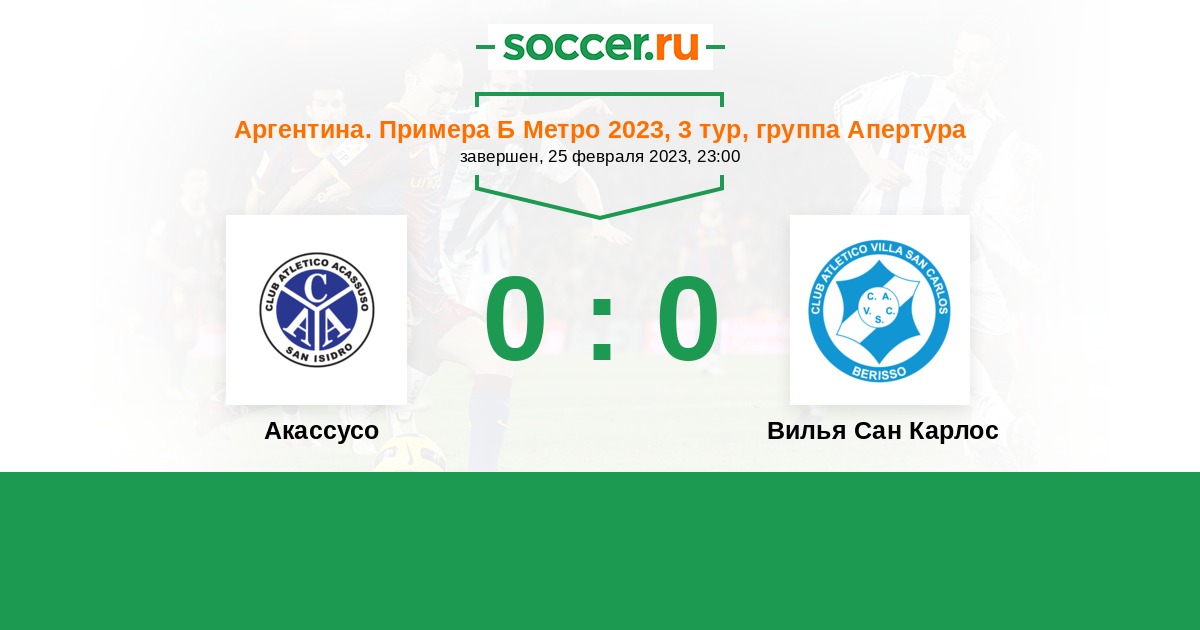 Протокол матча Акассусо против Вилья Сан Карлос
