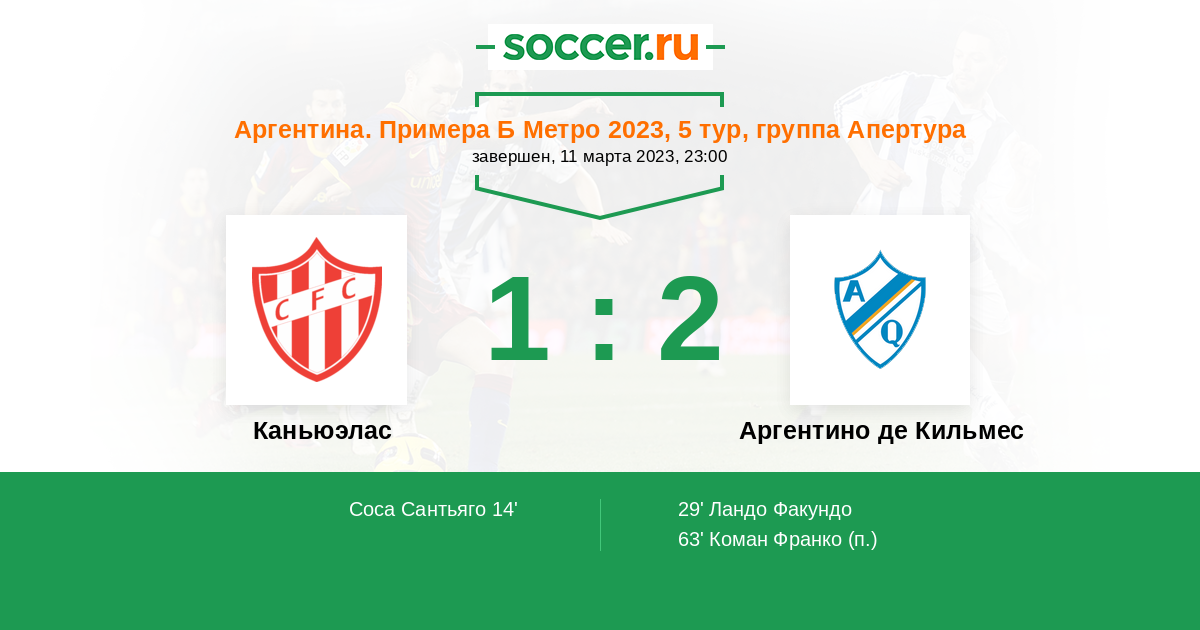 Протокол матча Каньюэлас против Аргентино де Кильмес