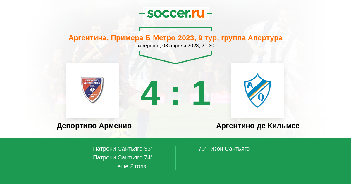 Протокол матча Депортиво Арменио против Аргентино де Кильмес