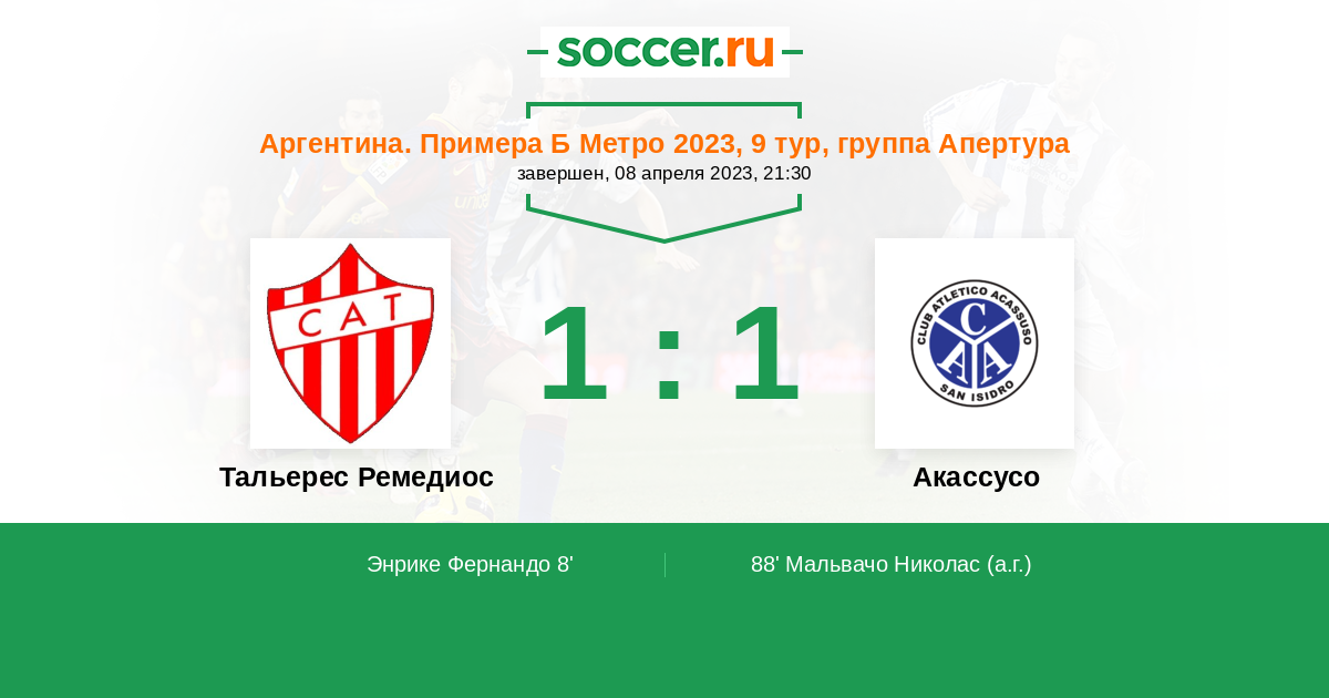 Протокол матча Тальерес Ремедиос против Акассусо
