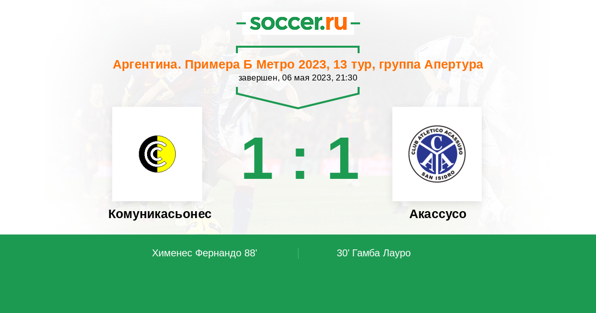 Протокол матча Комуникасьонес против Акассусо