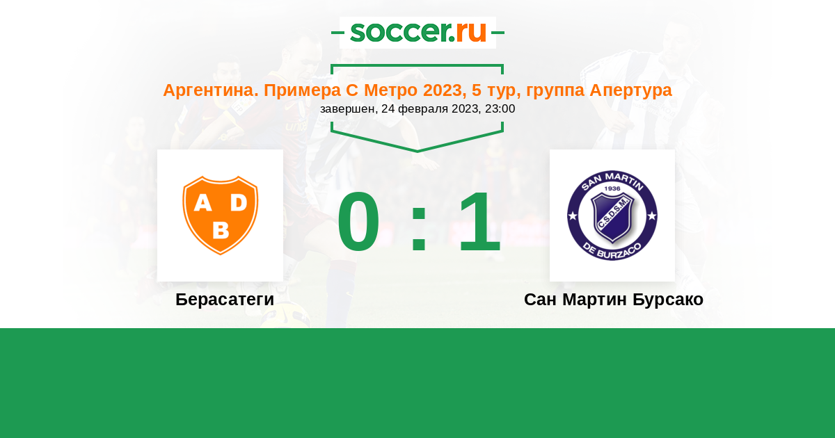 Аргентина. Примера С Метро 01.07.2023 Сан Мартин Бурсако Логотип футбольный клуб Сан Мартин Бурсако 1:1 Логотип футбольный клуб Берасатеги (Буэнос-Айрес) Берасатеги