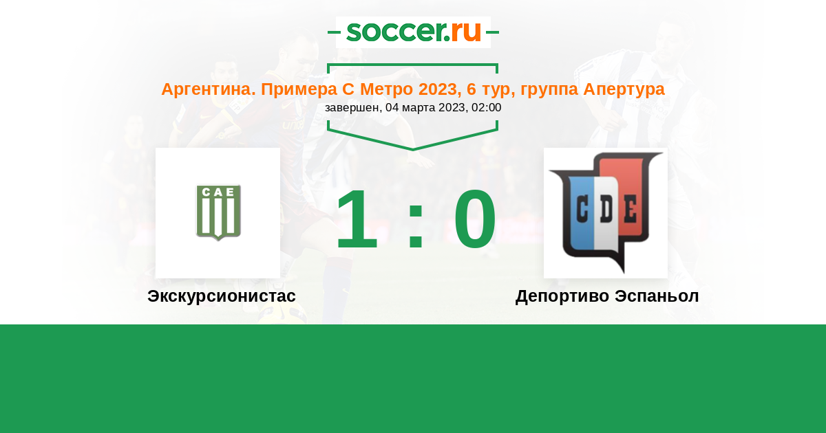 Аргентина. Примера С Метро 03.04.2021 Экскурсионистас Логотип футбольный клуб Экскурсионистас (Буэнос-Айрес) 1:0 Логотип футбольный клуб Депортиво Эспаньол (Буэнос-Айрес) Депортиво Эспаньол