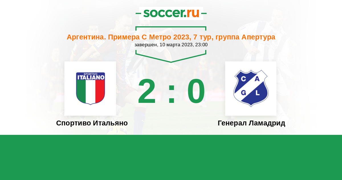 Аргентина. Примера С Метро 14.07.2023 Генерал Ламадрид Логотип Генерал Ламадрид (Буэнос-Айрес) 0:1 Логотип футбольный клуб Спортиво Итальяно (Буэнос-Айрес) Спортиво Итальяно