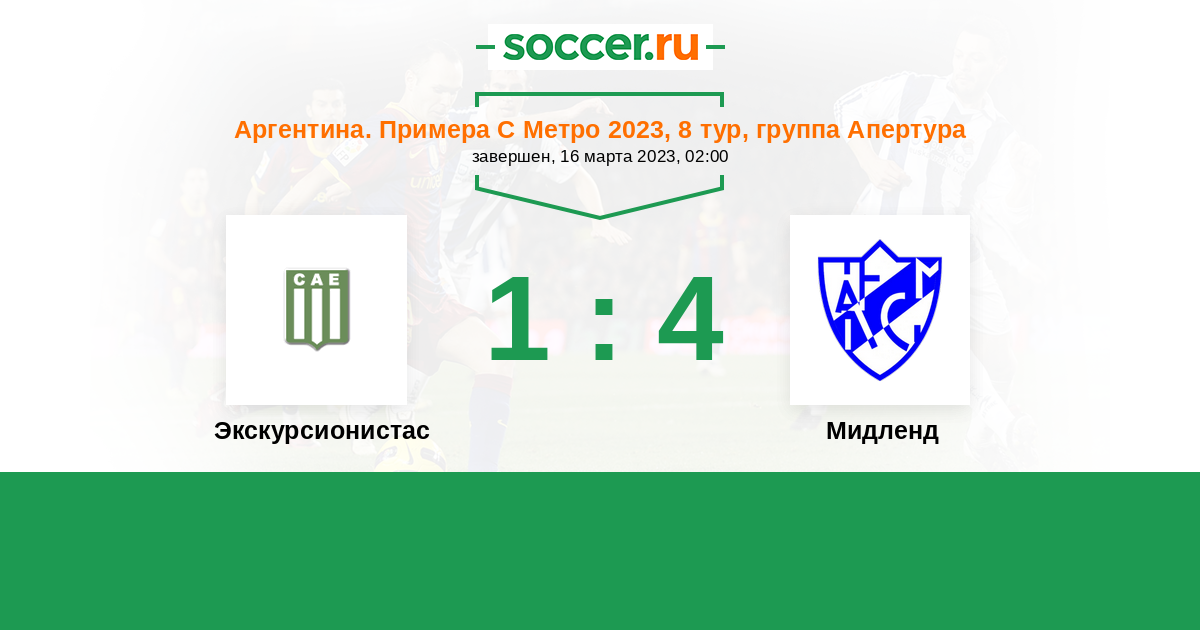 Аргентина. Примера С Метро 07.03.2022 Мидленд Логотип футбольный клуб Мидленд (Либертад) 4:0 Логотип футбольный клуб Экскурсионистас (Буэнос-Айрес) Экскурсионистас