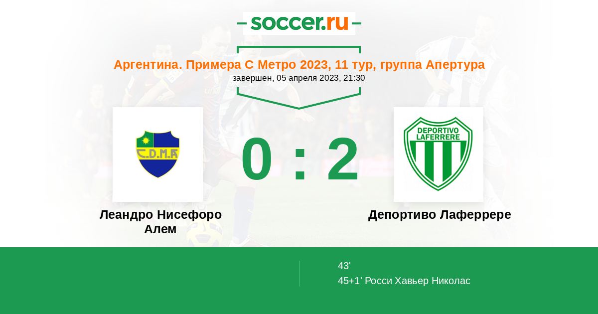 Протокол матча Леандро Нисефоро Алем против Депортиво Лаферрере
