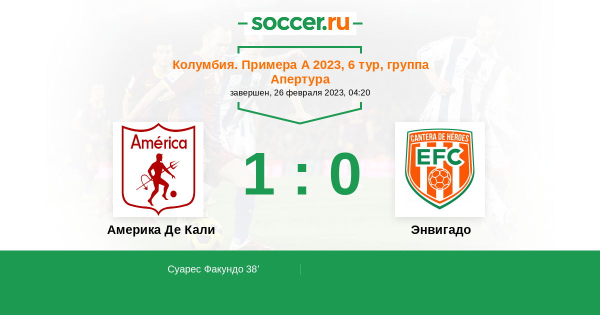 Протокол матча Америка Де Кали против Энвигадо