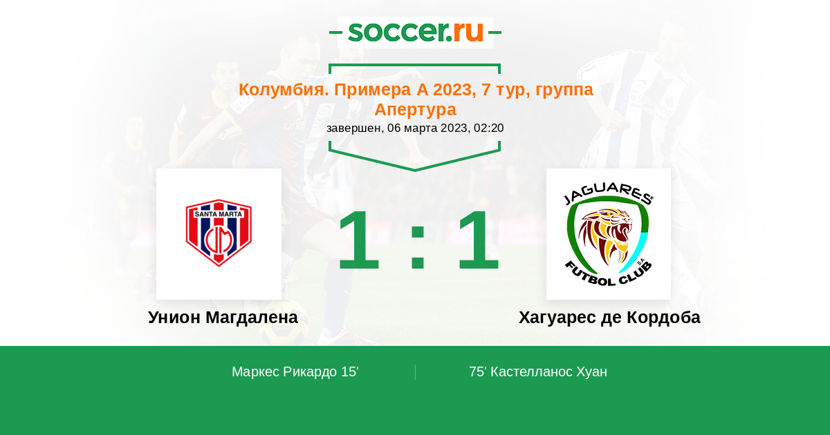 Протокол матча Унион Магдалена против Хагуарес де Кордоба