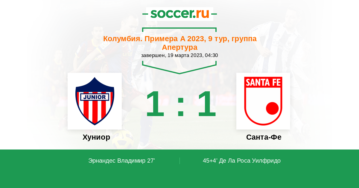 Протокол матча Хуниор против Санта-Фе