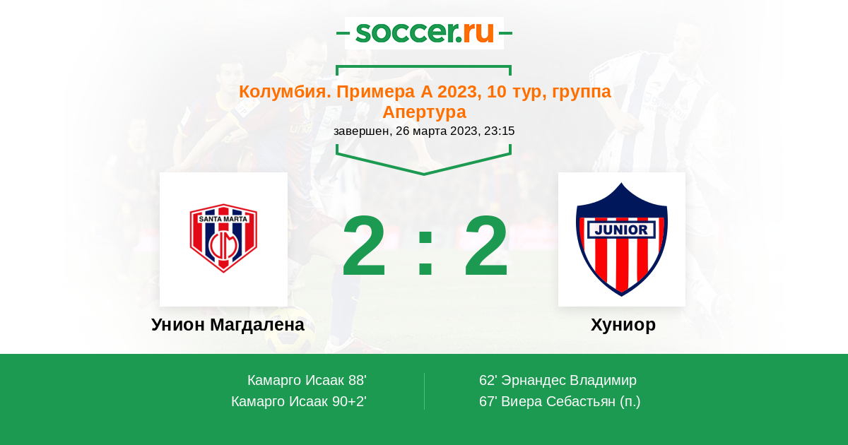 Протокол матча Унион Магдалена против Хуниор