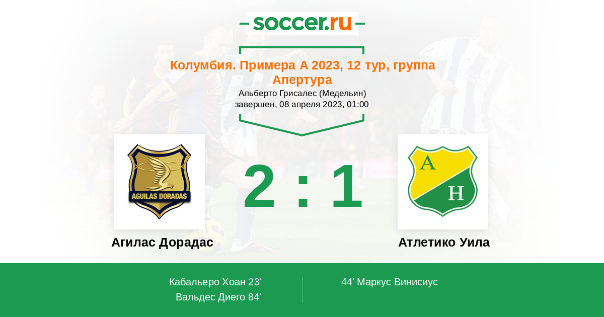 44' (1:1) Маркус Винисиус (10) (Диас Блас (6))