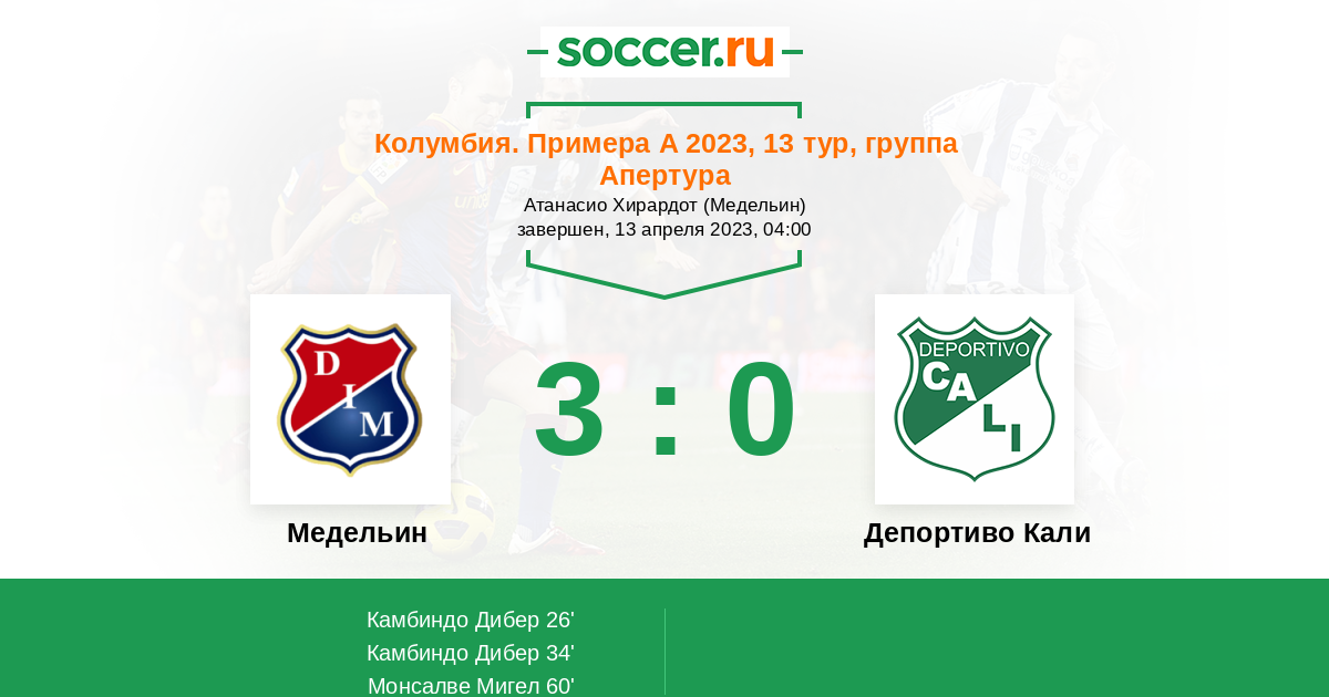 Протокол матча Медельин против Депортиво Кали