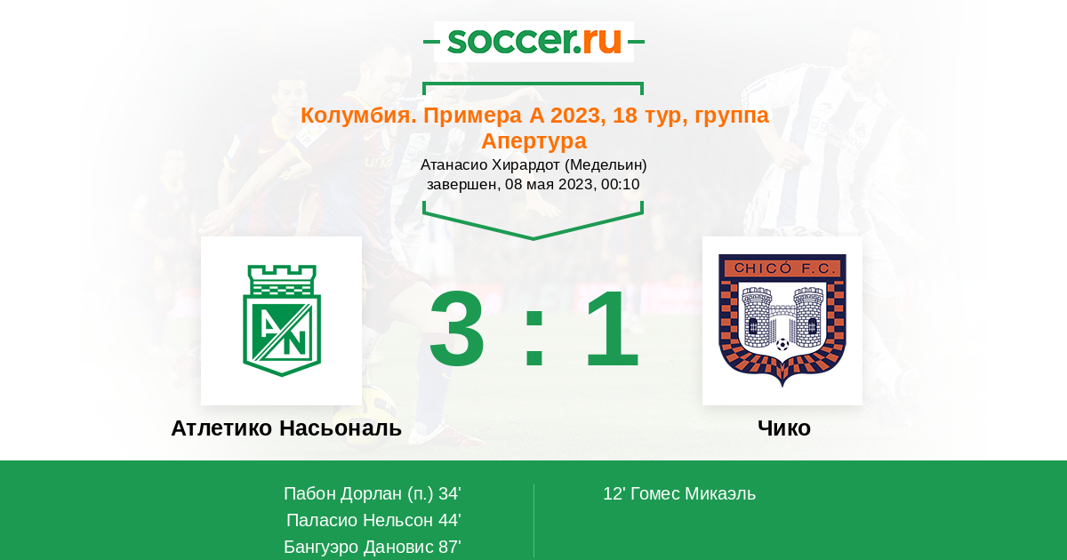 Протокол матча Атлетико Насьональ против Чико