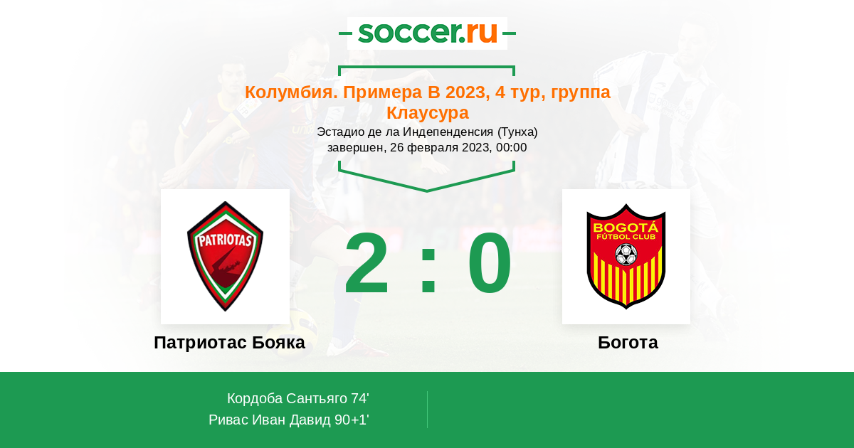 Протокол матча Патриотас Бояка против Богота