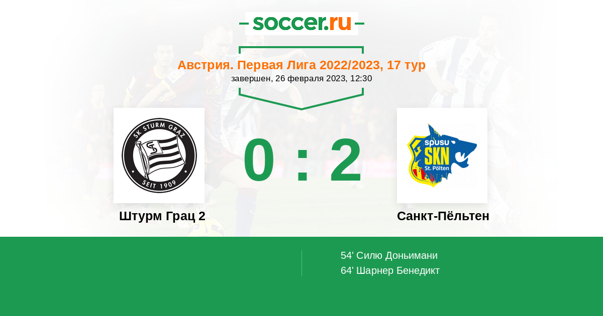 Протокол матча Штурм Грац 2 против Санкт-Пёльтен