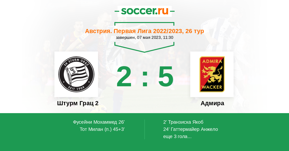 Протокол матча Штурм Грац 2 против Адмира